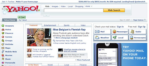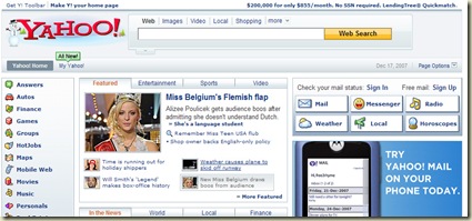I couldn't believe my eyes when a colleague of mine pointed me out to the Yahoo.com site today.