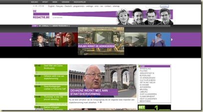 The VRT our public TV channel launched today their new look. On TV everything looked really great and they got different looks depending on the time of the day; but online, well that's a whole different story. They launched a site called www.deredactie.be. I don't know who did the design of the site but it's reaaaly bad, not only is the design bad but you don't find what you need and everything is so slow it's incredible.