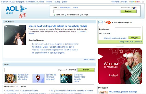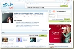 Aol launched a few days ago their portal in Belgium, problem is at the moment that the portal is not really worth it. It's only a combination of the news of Belga, a link to their instant messaging, mail and some video. But than again, it clearly states the word BETA on the top so it's only normal "At the moment", looking forward to see the evolution there.